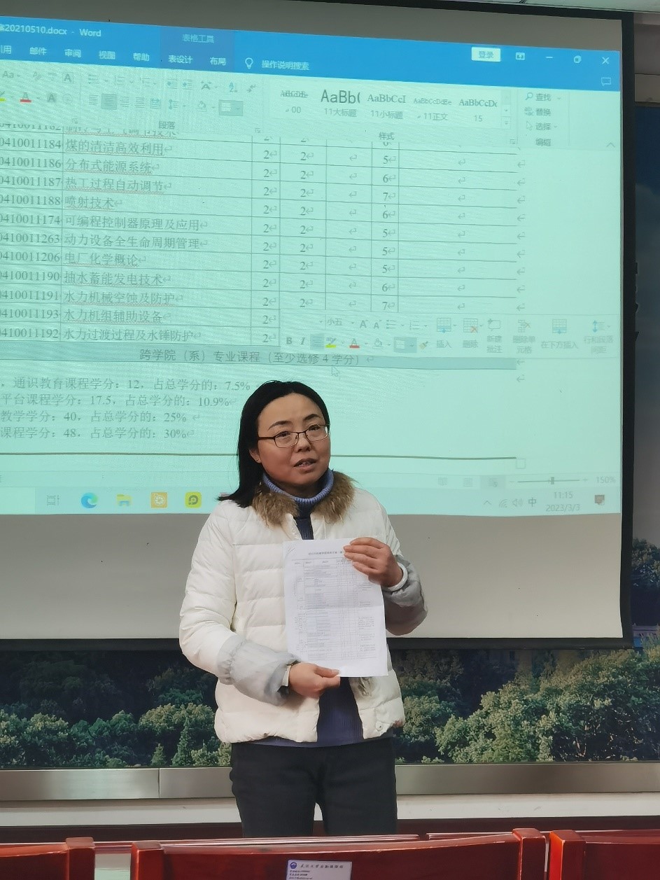 余亮英和王建梅针对20级能源与动力工程培养方案为同学们答疑。余亮英老师首先肯定了同学们在大三提前进行学分自查和毕业规划的工作,强调进行自查时须严格对照培养方案,及时修完创新学分,提醒同学们选课时看清课程类别、发现补课需求时看清开课学期等细节,对培养方案进行了详细的解读。
