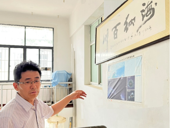 “这幅‘海纳百川’的字,底下贴着的地图是钓鱼岛。”叶教授说,“这是要员工拥有胸怀天下的气魄,和担当民族复兴的重任。”
