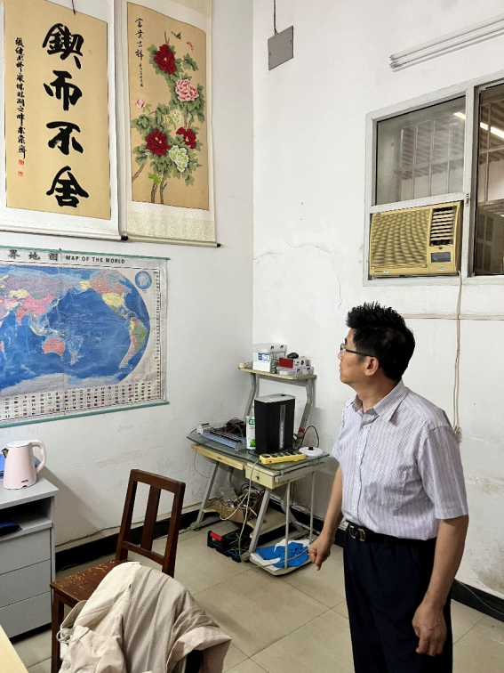 叶教授介绍其研究生课业室墙上的书法作品《锲而不舍》