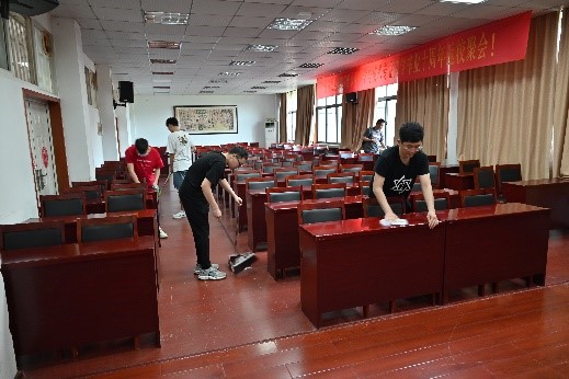 本次劳动教育的内容是对伟德vb学术报告厅、会议室、走廊等公共区域及九教周边地面环境进行打扫。