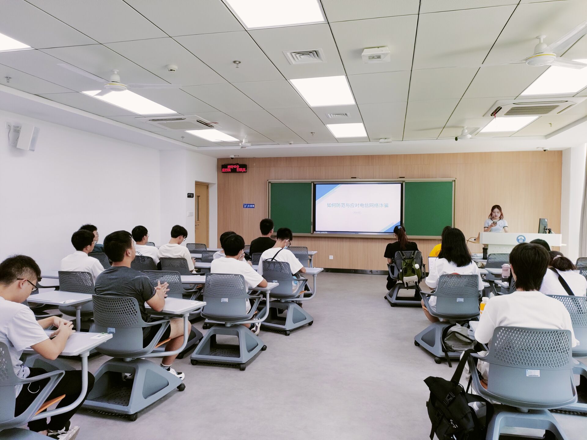 其次,她向大家展示了几种电信诈骗的高发类型,并详细讲述了刷单返利类诈骗和冒充公检法类诈骗,使同学们对这些诈骗手段产生了深刻的印象。很多诈骗就发生在日常生活中,QQ号码被盗取,手机收到陌生电话,这些都有可能是诈骗团伙实施诈骗的第一步,如果警惕性不高,很有可能落入他们的圈套。
