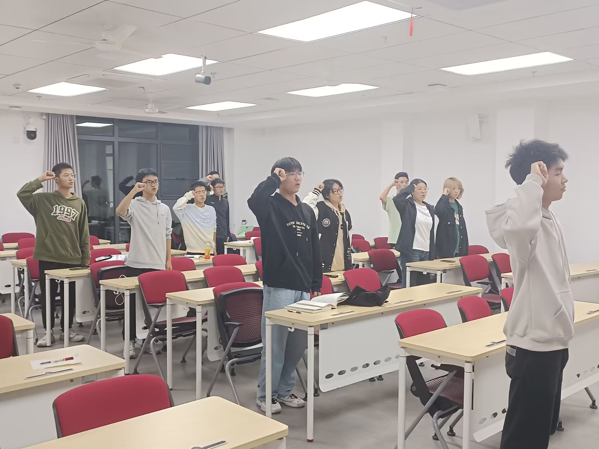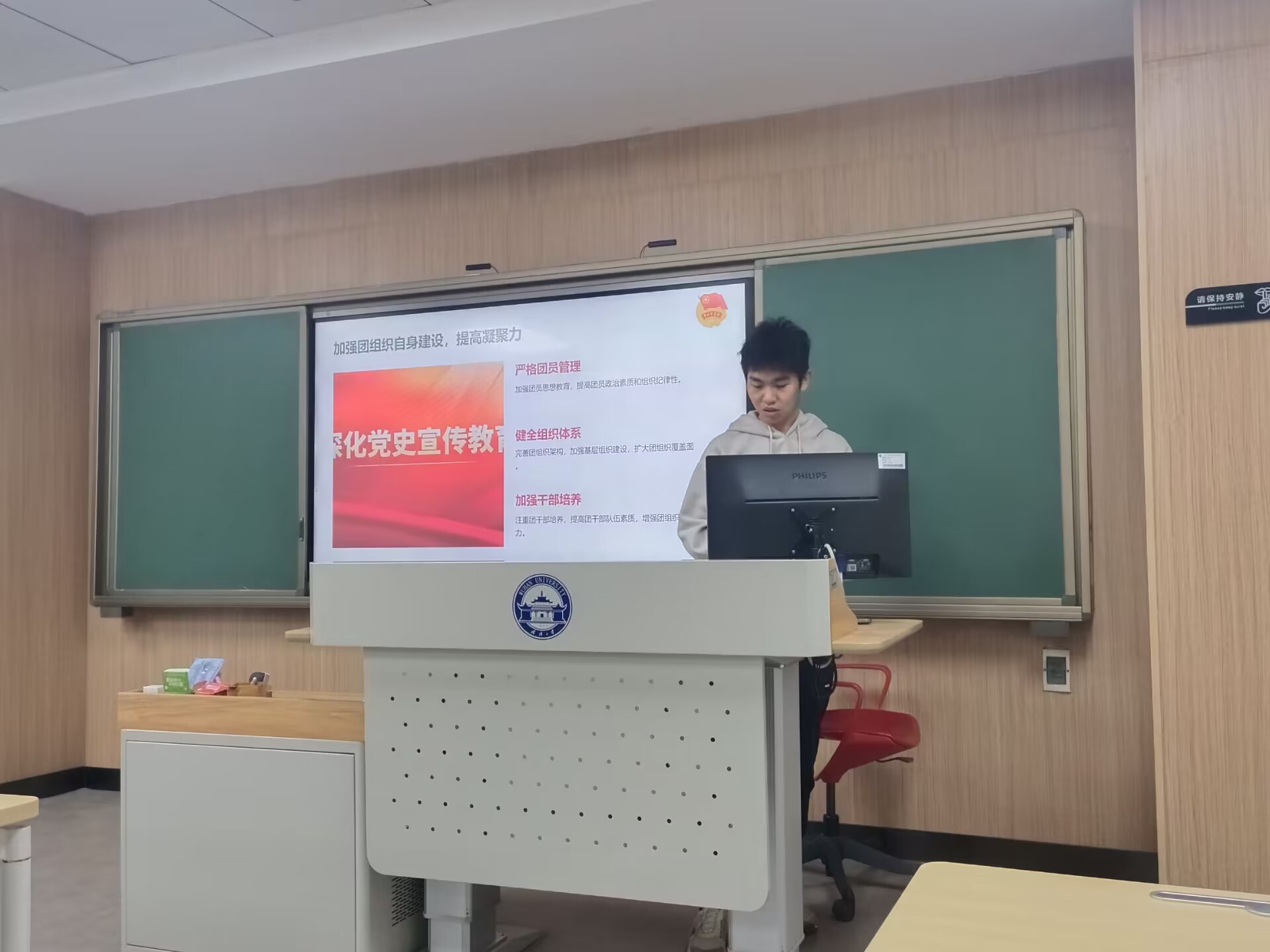 接着,来到了歌唱团歌的环节。随着音乐缓缓响起,全体共青团员起立,目光坚定,神情肃穆,共同唱响那激昂的团歌。歌声中,每一个音符都承载着团员们对团的热爱与敬仰,每一个节拍都传递着青春的活力与激情。歌声回荡在教室内,也回荡在团员们的心中。它像一股无形的力量,将在场的团员青年们紧紧凝聚在一起,让他们感受到了团组织力量,激励共青团员们共同为团的事业去奋斗、去拼搏。